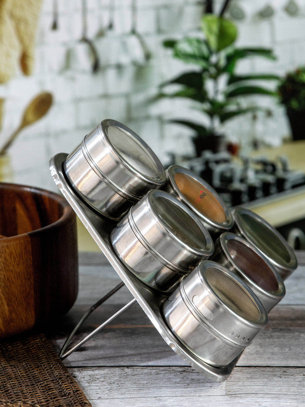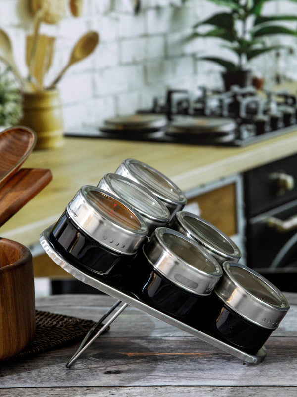 Goodhomes Magnetic Spice Jar Set with Stand (Set of 6pcs Jar & 1pc Stand)