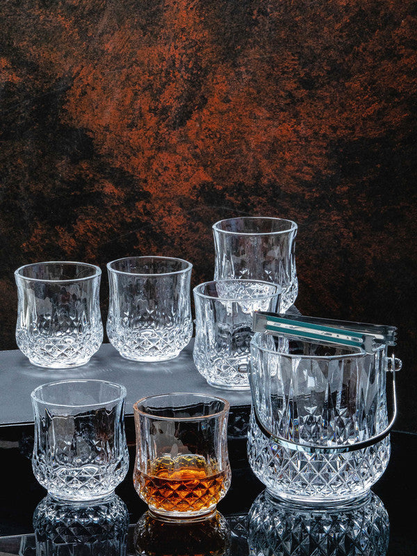 Roxx Glass Long Champ Ice Bucket Set (Set of 6pcs Tumbler & 1pc Bucket with Steel Tong)