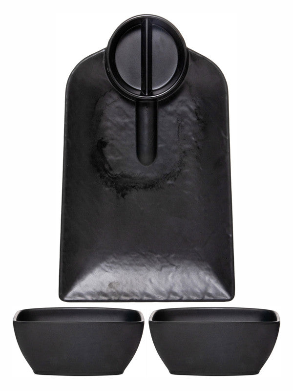 Servewell Spade Matte Platter and Cate Matte Veg Bowl Set 3 pc - Black