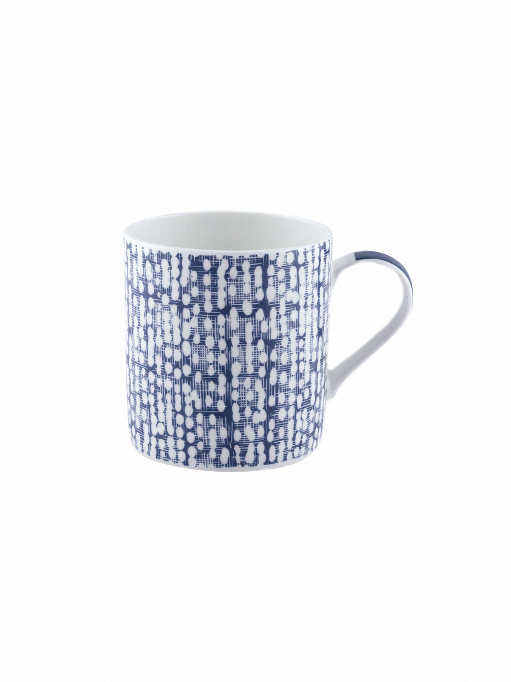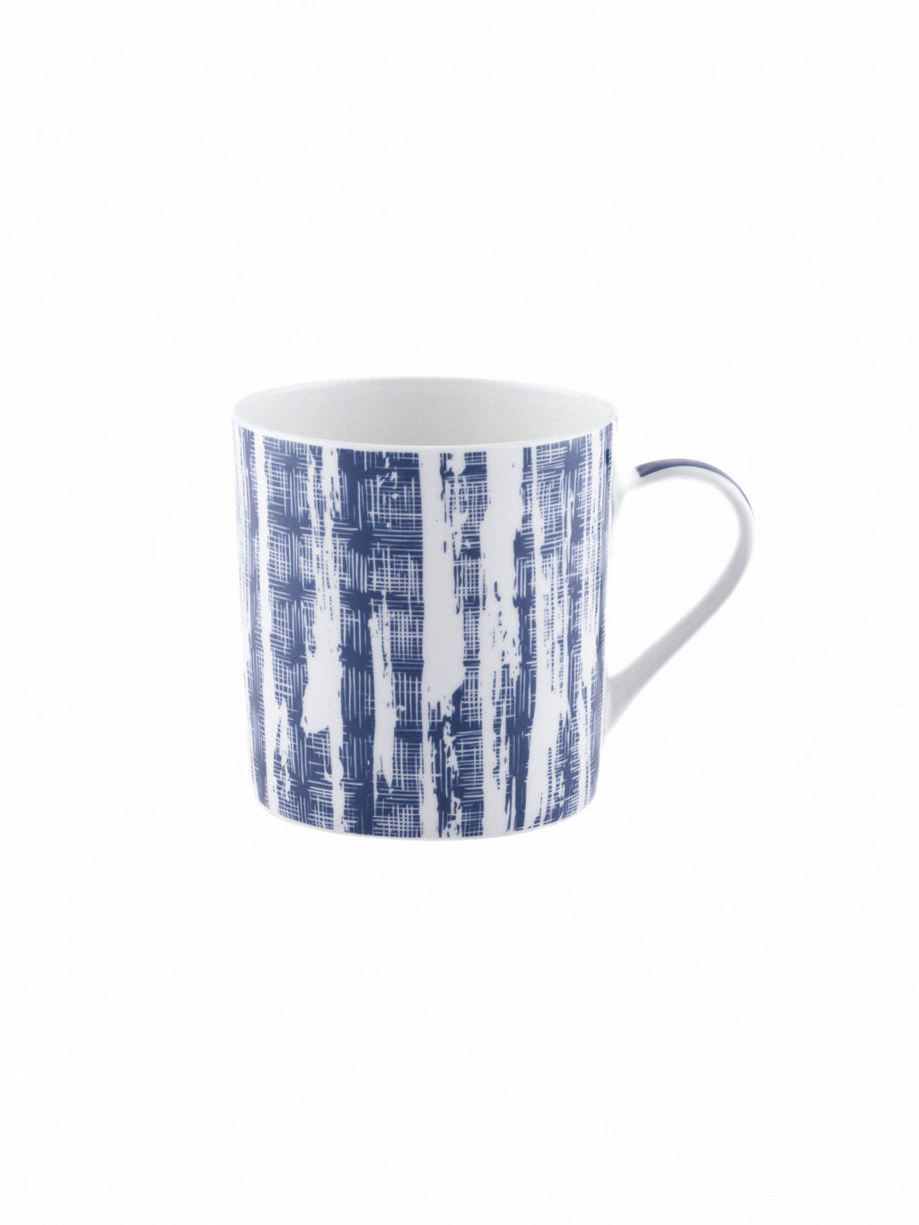 Bone China Coffee Mug Set with Indigo Abstract Design. ( Set of 6 Cup )