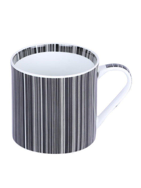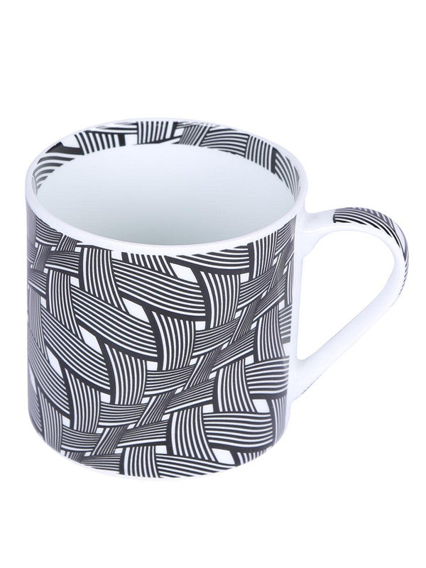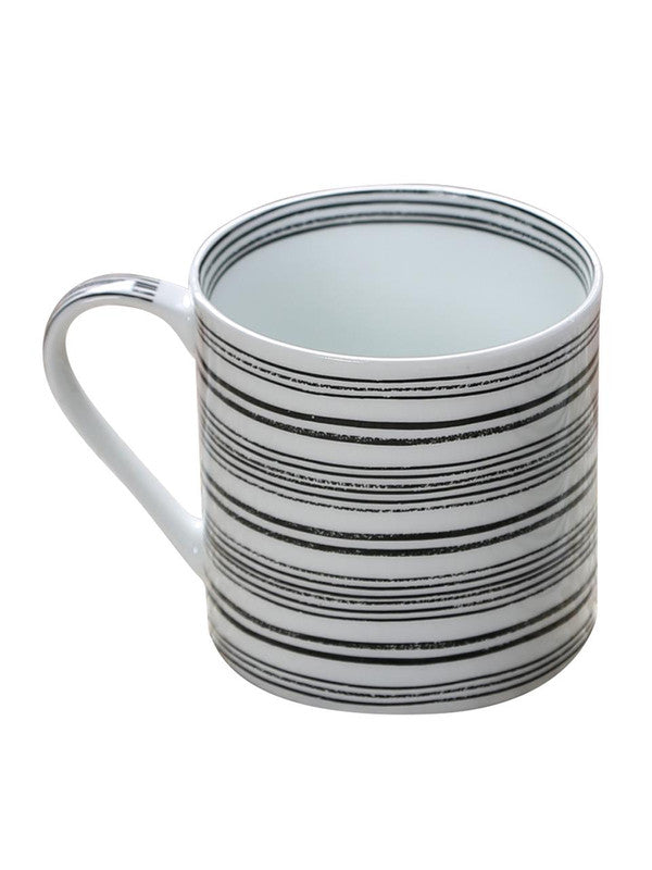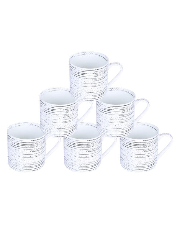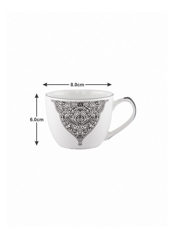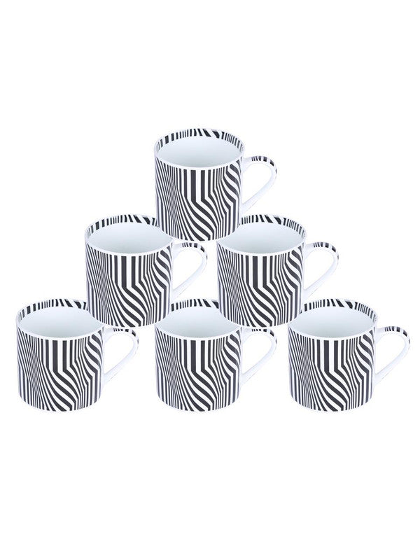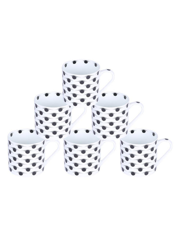 Bone China Coffee Mug Set with Inner Chain & Black Design. ( Set of 6 Cup )