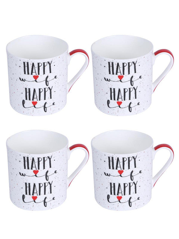 Bone China Mug Set with Happy Happy Slogan ( Set of 4 Cup )