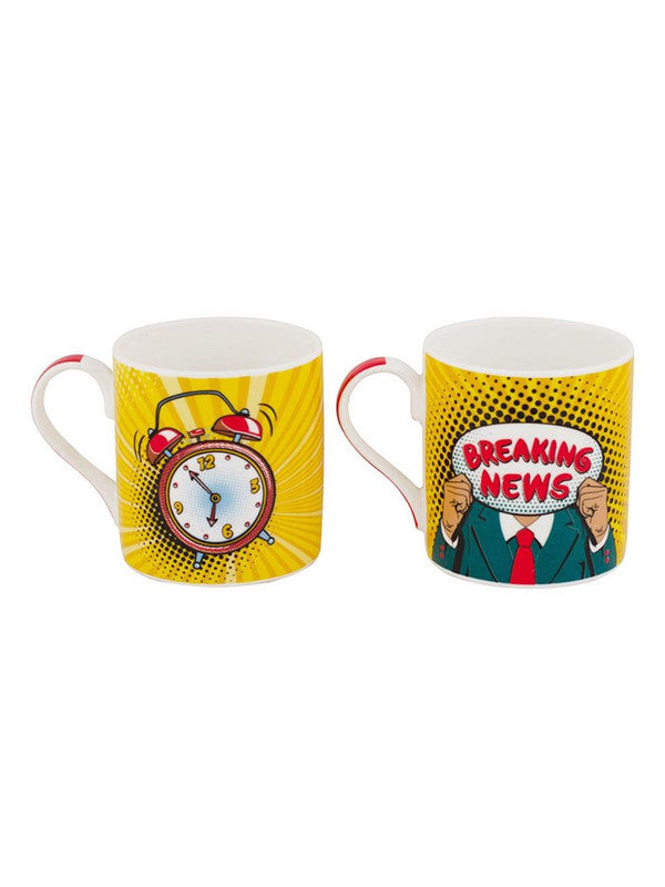 Bone China Mug Set with Breaking News Slogan ( Set of 4 Cup )