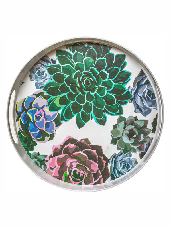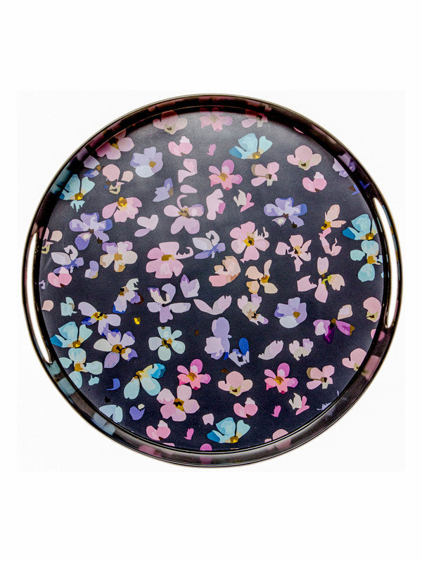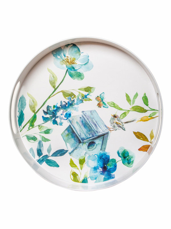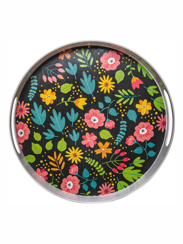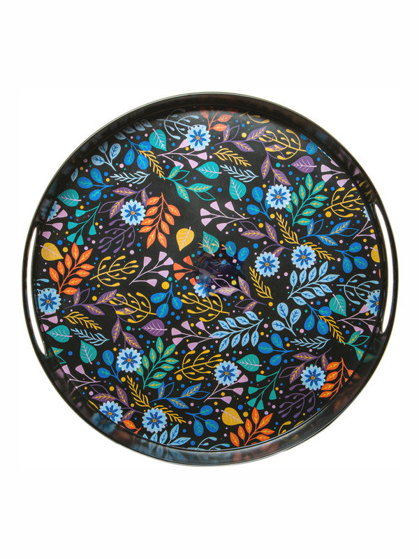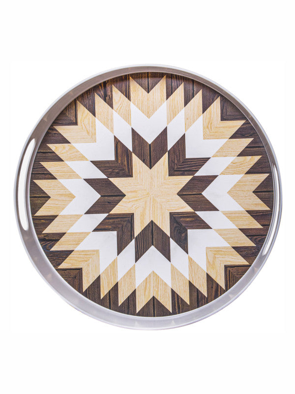 Stehlen Melamine Decorative Round Serving Tray with Handle (Set of 1pc)