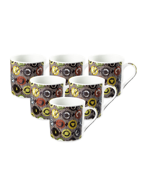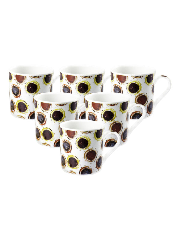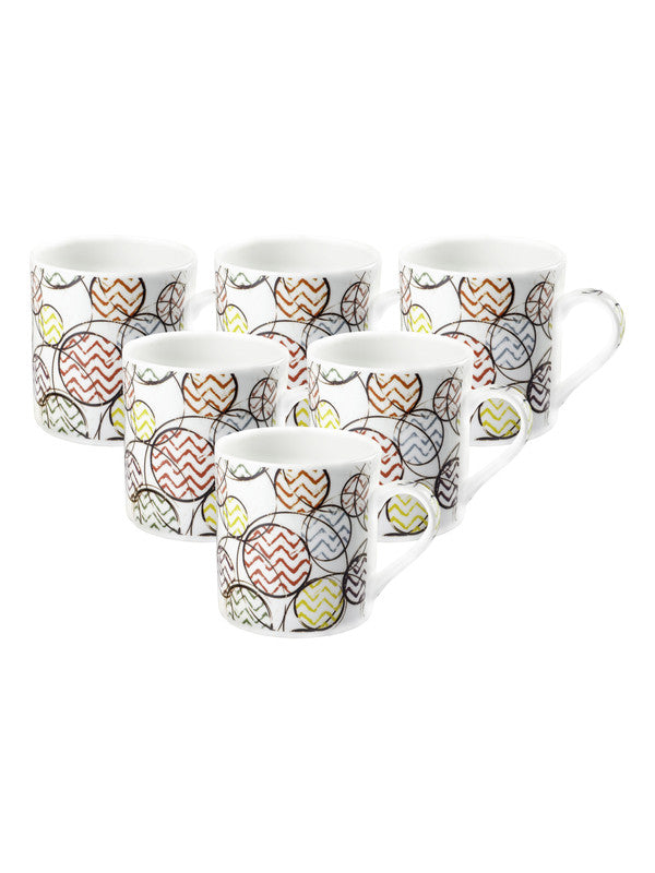 Bone China Tea Cups/Coffee Mugs with Geometric Design (Set of 6 mugs)