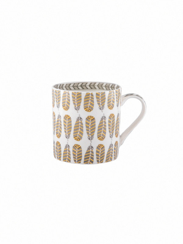 Bone China Tea Cups/Coffee Mugs with Modern Leaf Print (Set of 6 mugs)