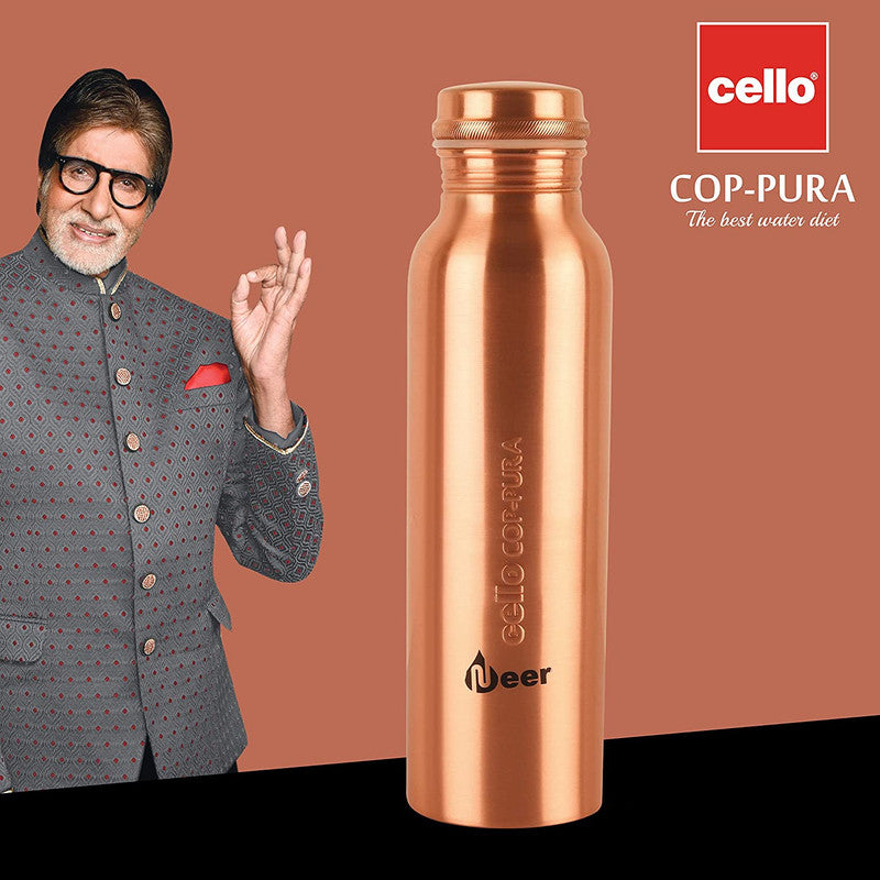 Cello Cop-Pura Neer Copper Water Bottle, 1000 milliliters,Pack of 1, Copper
