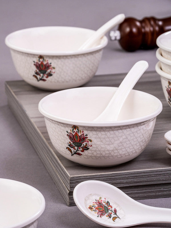 12 pcs Soup Bowl With Spoon Set Urmi - Phulkari