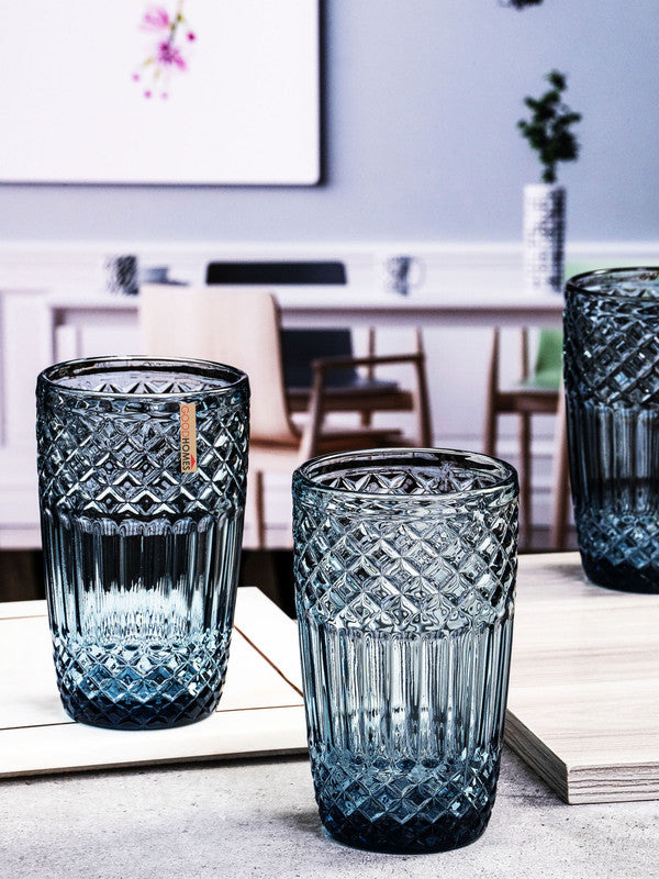 A beautiful classic design, this crystal pressed tumbler set brings a touch of elegance to your glassware collection, bar top or dining table. This set of drinking glasses is adorned with a hint of Charcoal Blue color, sure to brighten up the table and leave an impression on the guests. Perfect for whiskeys, liquers or just juice in the mornings, this crystal pressed tumbler is a beautiful addition to your drinkware.