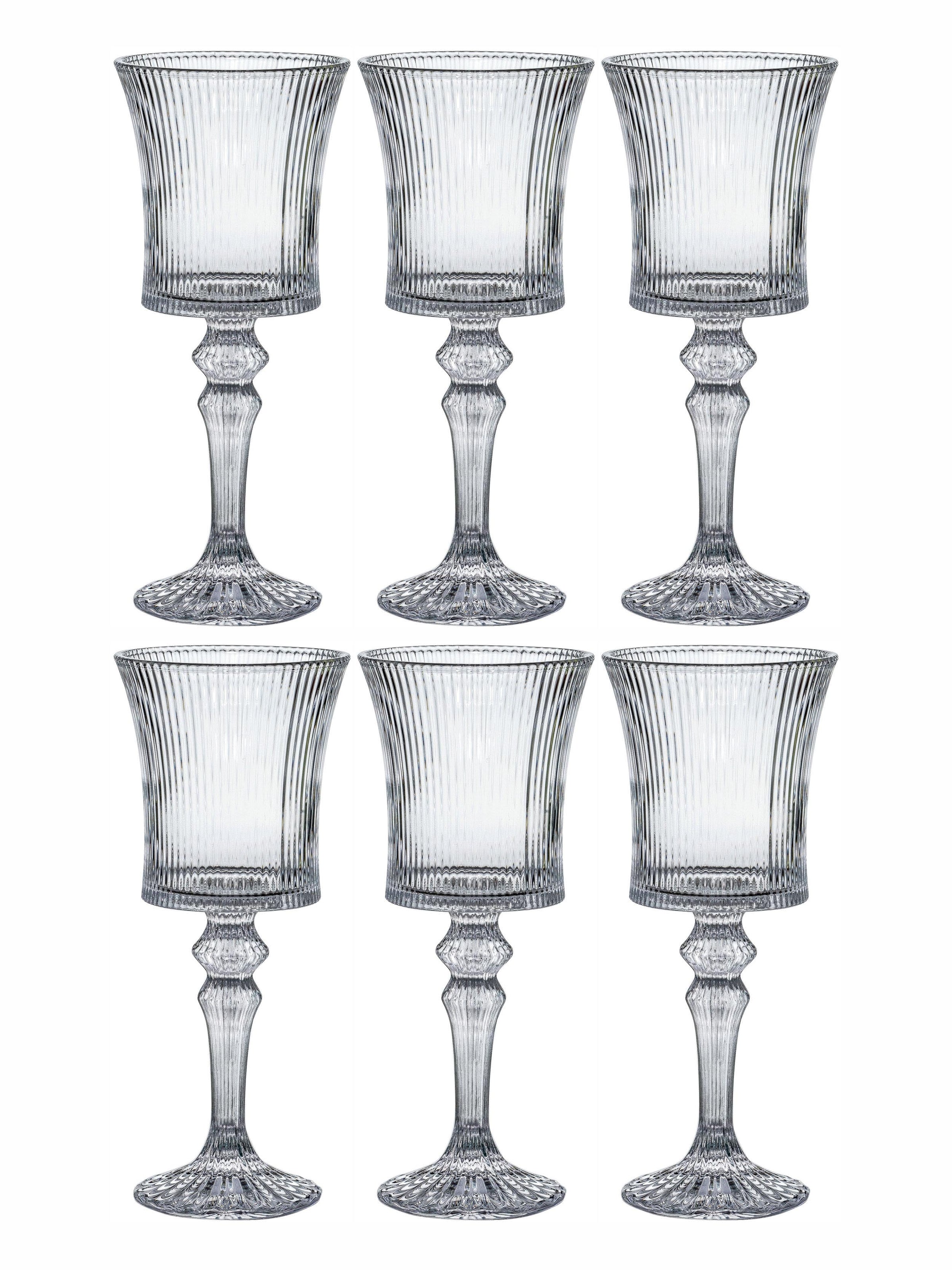 Indulge in your favorite glass of wine with these elegant and classic crystal pressed wine glasses. This range is beautifully shaped with sleek fine drawn stems and offer exceptional clarity so your glass of vino is showcased crisply. Sophisticated and great for dinner parties, they will feel and look wonderful so you can sip away in style. These wine glasses are dishwasher safe giving you more time to relax with your glass of wine in peace.