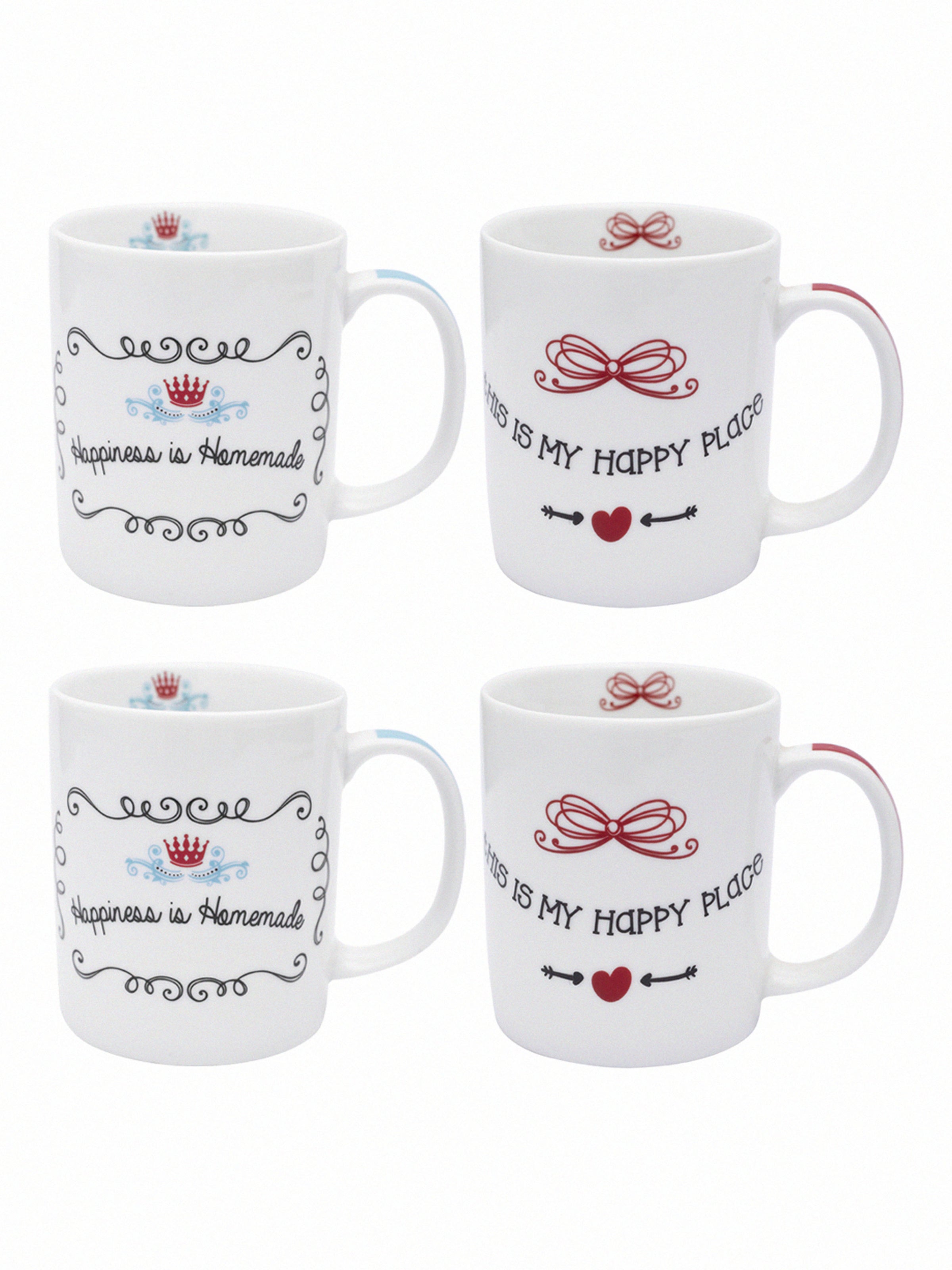 Porcelain Tea Cups /Coffee Mugs with Fun Wordings ( Set of 4 Cups )