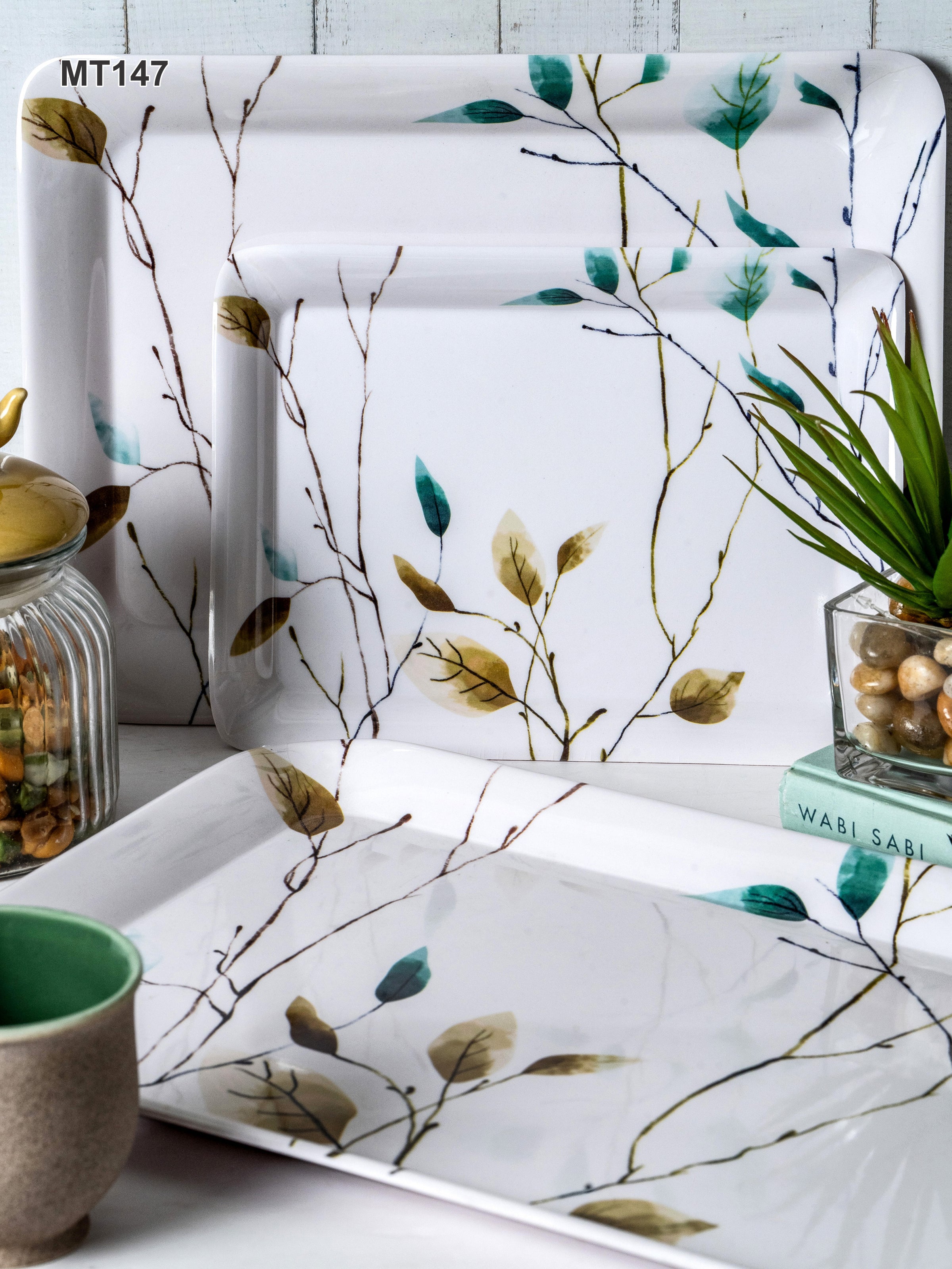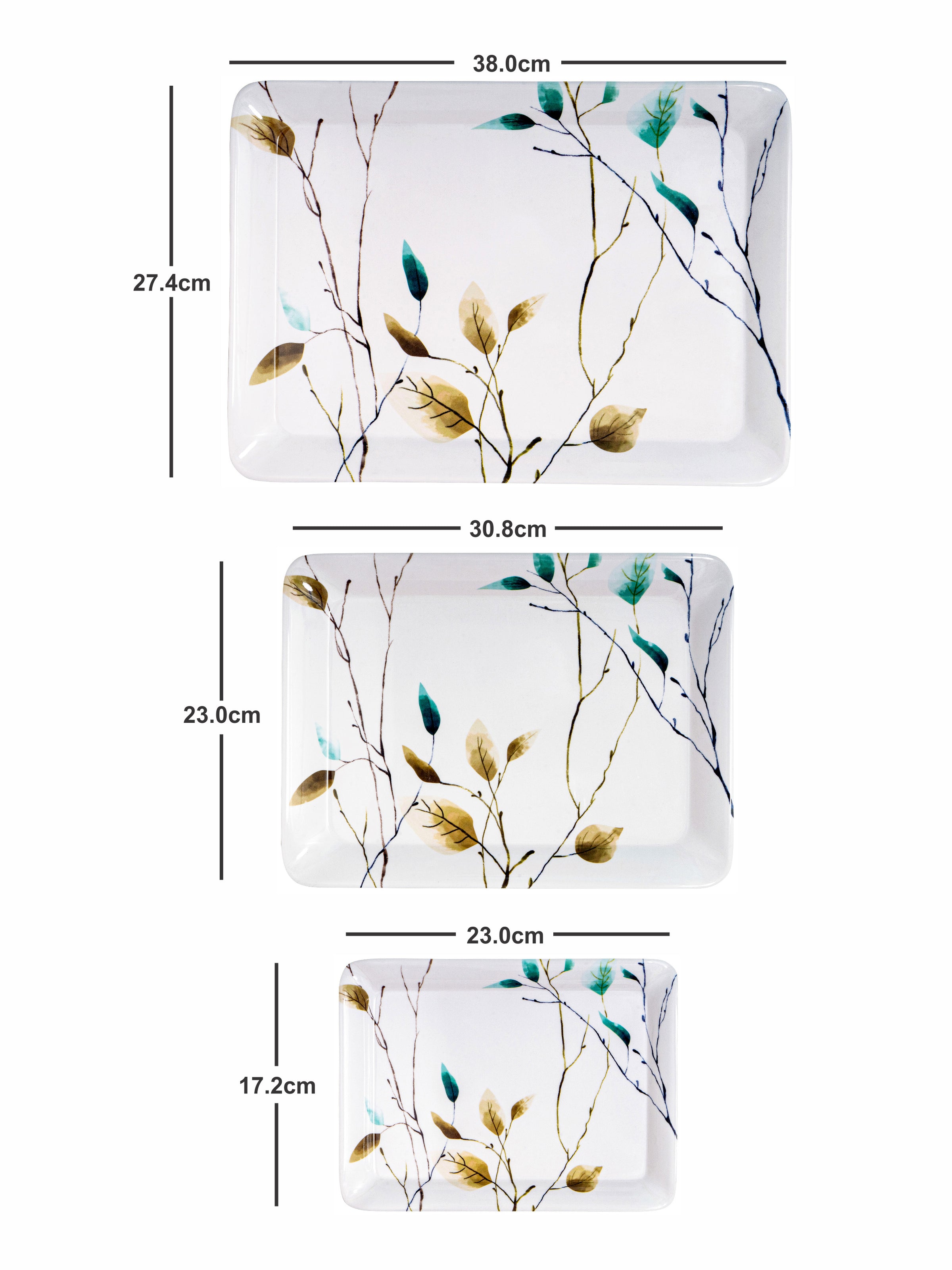 The perfect way to serve up afternoon tea and cakes in the living room or enjoy an indulgent weekend breakfast in bed, our melamine tray set is a highly practical choice for your home. This tray set is made from hard wearing melamine, ensuring a durable finish to resist wear and tear. (Small : H-2.0cm, L-17.2cm, W-23.0cm, W-205gm, Medium : H-2.0cm, L-23.0cm, W-30.8cm. W-320gm, Large : H-2.0cm, L-27.4cm, W-38.0cm, W-625gm)
