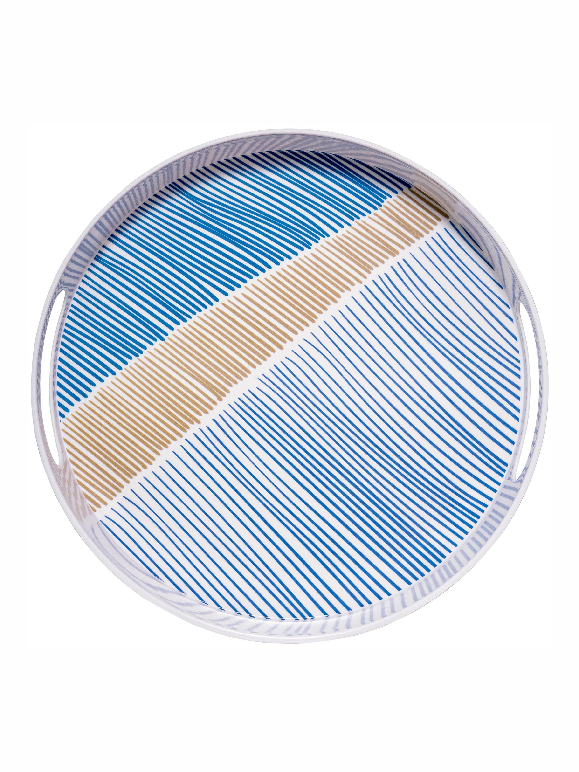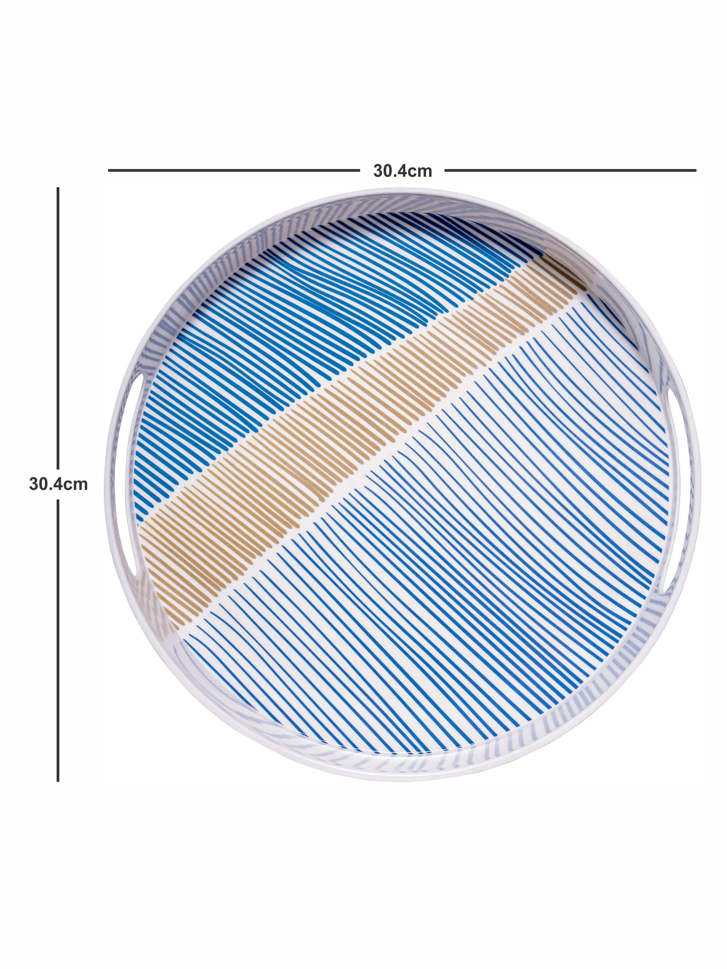 This beautiful round printed Melamine tray with easy-to-grip handles is a practical yet stylish addition to any kitchen and adds a chic element to serving a variety of things. Use this contemporary tray to serve a leisurely breakfast, after-dinner drinks or to bring lunch outdoors on a sunny afternoon. With so many serving options, this durable and easy to clean tray offers a handy yet modern element to any kitchen and will be a great addition to your serving ware.