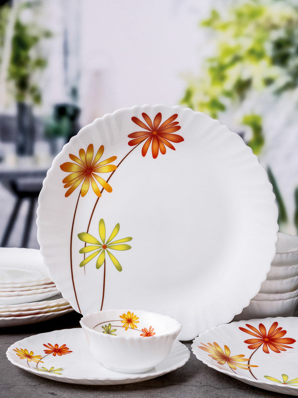 Dinnerware that is infused with beauty and strength. Charming dishes, patterned in colourful new designs make for serveware that will always be noticed. Cello dinner sets are produced in the most advanced state-of-the-art manufacturing facility using German Technology. The dinner sets are break, chip and scratch resistant along with being non porous and hygenic for everyday use and easy up keep. Made in vibrant colour and patterns the bright white opalware showcases the food you have made with style garnering appreciation from all. Ideal for everyday use as well the perfect gift for your favourite host, Cello dinner sets will make every meal a special occassion. (6pcs Dinner Plate : H-2.4cm, RD-25.0cm, W-394gm, 6pcs Quarter Plate : H-1.7cm, RD-18.0cm, W-210gm, 6pcs Veg Bowl : H-4.3cm, RD-10.0cm, W-124gm, C-150ml)