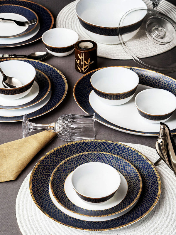 See your dinner table bloom with our stunning 29 pcs dinner set. A wonderful choice for refreshing your dinnerware, this beautiful dinner set is complete in itself to have you covered for any occasion. Decorated with a beautiful ornamental design, our opal glass dinner set will offer a formal finish to any setting. It is perfect for entertaining guests as well as special meal times with the family. (6pcs Dinner Plate : H-2.0cm, Round-27.0cm, W-460gm, 6pcs Quarter Plate : H-1.7cm, Round-19.0cm, W-245gm, 6pcs Veg. Bowl : H-4.5cm, Round-10.0cm, W-170gm, C-200ml, 6pcs Soup Bowl : H-5.5cm, Round-12.0cm, W-170gm, C-300ml, 1pc Oval Platter : H-2.9cm, L-25.0cm, W-33.0cm, W-645gm, 2pcs Serving Bowl : H-8.0cm, Round-19.8cm, W-435gm, C-1370ml, 2pcs Serving Bowl Lid : H-4.5, RD-20.0cm, W-72gm)